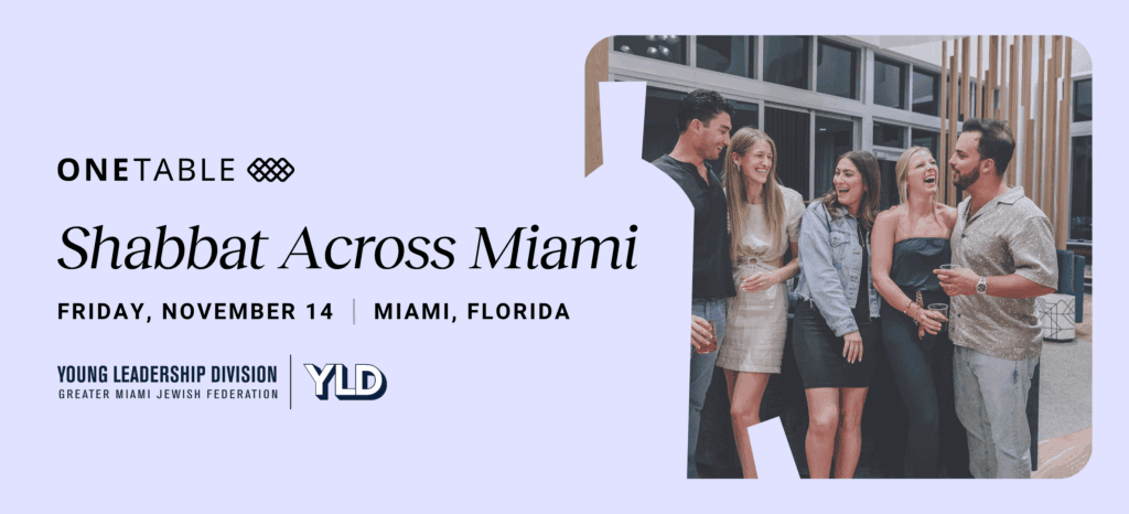 OneTable and Young Leadership Division (YLD) of Greater Miami Jewish Federation are teaming up to help you build community throughout our beloved Miami through hosting Shabbat dinners.